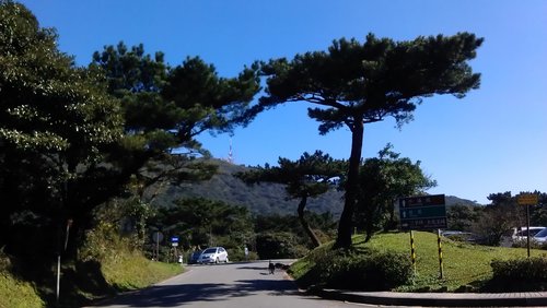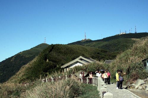 自遊客服務站出來左觀座於山上的電塔, 右往小油坑噴口