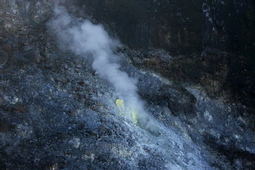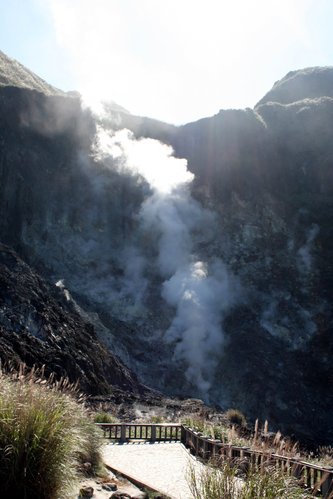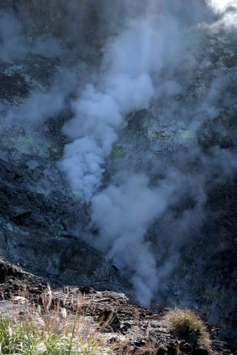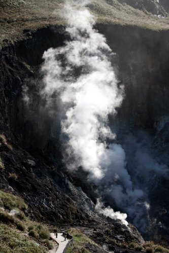 嚕嚕聲響的噴發口噴著帶有刺鼻硫磺味的氣體…
