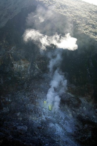 和SO2等化學物質腐蝕、塌陷而成,噴氣孔周圍岩石表面及岩隙