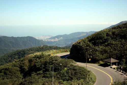 離開小油坑之後可觀看對山的沿山公路與往山下而去的金山公路
