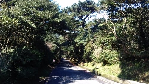 輪胎滾動往高度不斷爬升蜿蜒路上,