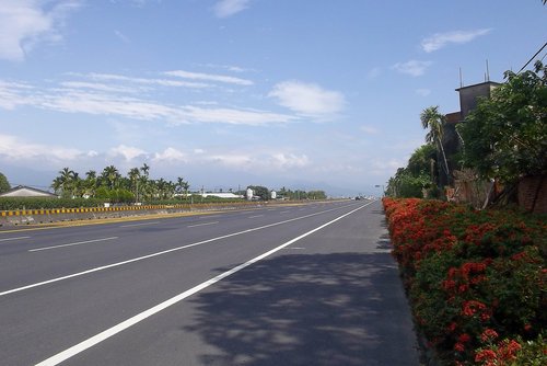 騎過戰備道來到屏南工業區, 原先整路的橘紅色木棉花已換上綠色新衫