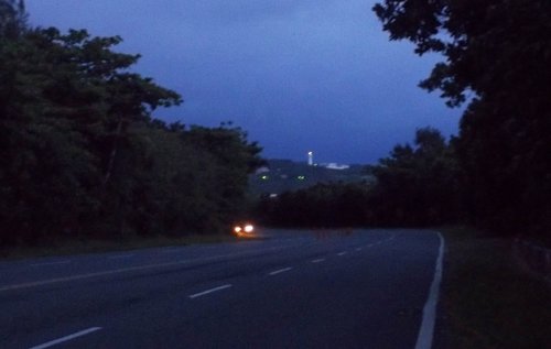 來到砂島之前, 鵝鑾鼻登塔在昏暗中閃著明亮的燈火..