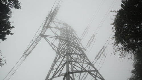 步道上電塔上 "通宵-南湖線" 的標牌引我注目